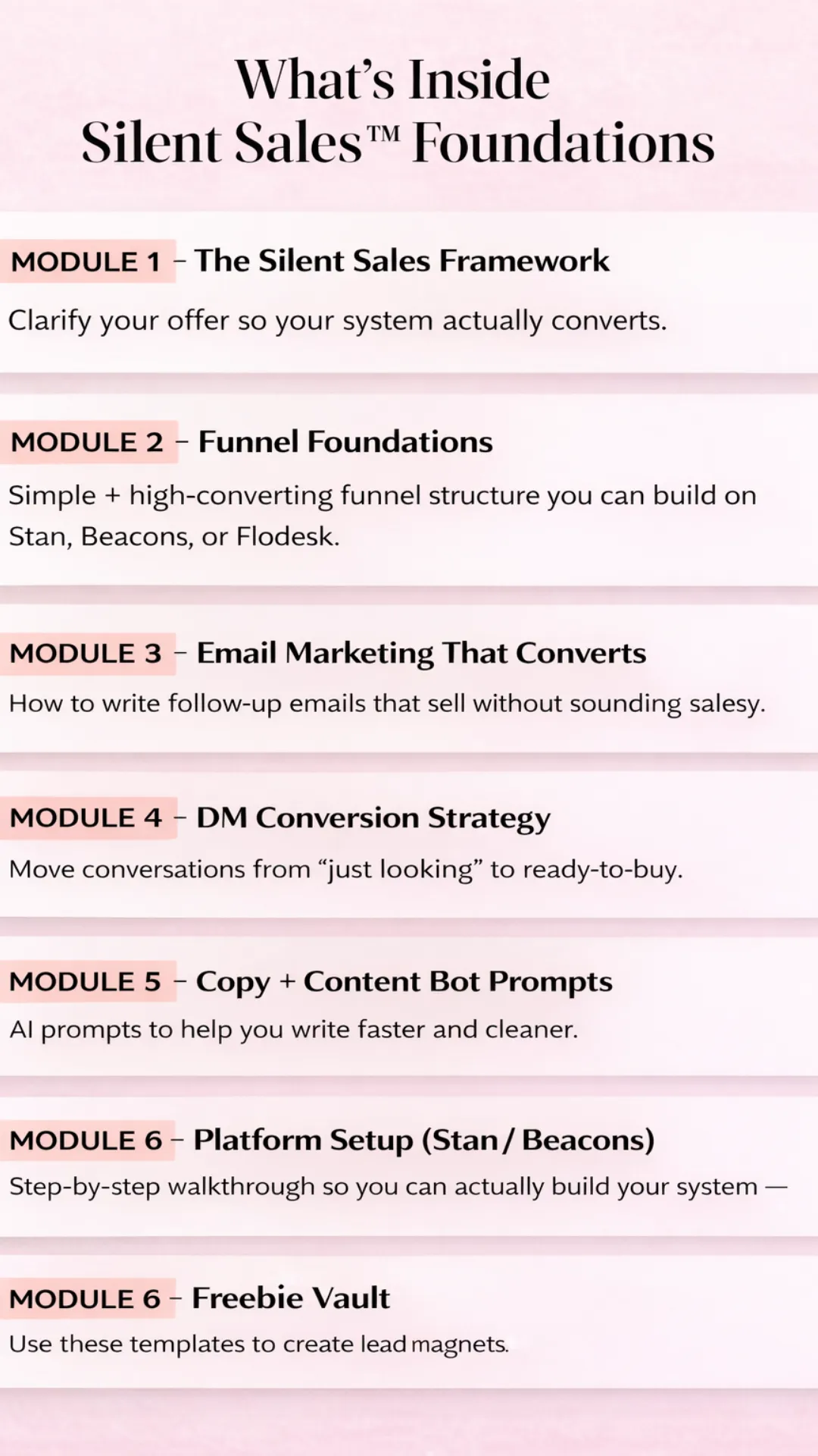 It gives you the backend structure you need before scaling into the full Silent Sales infrastructure.